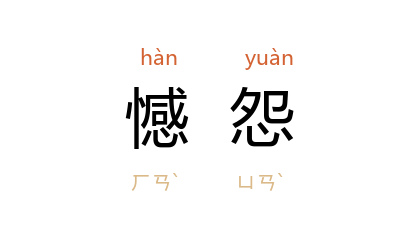 引北齐 刘昼 《新论·言苑》:“天无情於生死,则不可以情而憾怨。”清 蒲松龄 《聊斋志异·采薇翁》:“翁不时乘马出,遨游部伍之间,而军中悍将骄卒,輒首自堕地,不知其何因。因共疑翁,前进严飭之策。兵士已畏恶之,至此益相憾怨。”