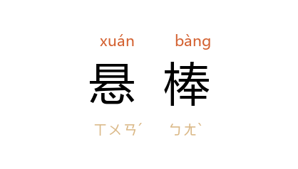 ⒈ 曹操 除 洛阳 北部尉,造五色棒,悬门之左右,有犯禁者,不避豪强,皆棒杀之。见《三国志·魏志·武帝纪》。后以“悬棒”指严正执法。