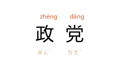 ⒈ 代表某一阶级、阶层或集团并为维护其利益而斗争的政治组织。是阶级发展到一定阶段的产物,又是阶级斗争的工具。