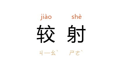 引《新五代史·吴世家·杨行密》:“信 曰:‘ 汉 有 韩信,吴 有 刘信,君还,其语 亚次,当来较射於 淮 上也。’”《二刻拍案惊奇》卷三十:“万户之子 易大郎,年已长大,精熟武艺,日夜与同伴驰马较射。”清 昭槤 《啸亭杂录·博尔奔察》:“又有较射而弓落地者,上震怒。”