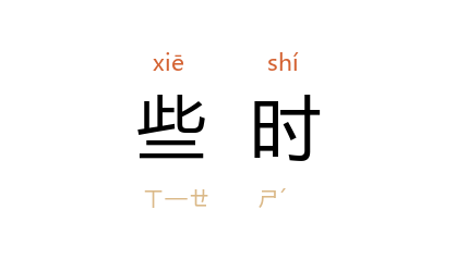 引宋 毛滂 《蝶恋花·送茶》词:“醉色轻鬆留不可,清风停待些时过。”明 冯梦龙 《山歌·比》附《劝郎歌》:“奴愿团圞到白头,不作些时别。”清 纳兰性德 《一斛珠·元夜月蚀》词:“天公毕竟风流絶,教看蛾眉,特放些时缺。”