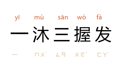 引汉 王充 《论衡·书解》:“文王 日昃不暇食,此谓演《易》而益卦; 周公 一沐三握髮,为 周 攻法制而 周 道不弊。”太平天囯 洪仁玕 《英杰归真》:“干王 恩高量广,不以初交见嫌,不以触犯见罪,虽兴 周 之 姬旦,一饭吐三餔,一沐三握髮,无以过也。”