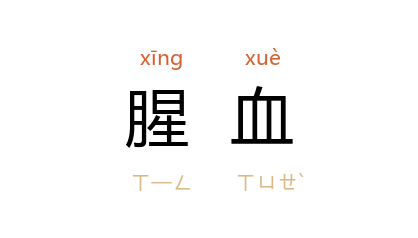 引元 耶律楚材 《怀古一百韵寄张敏之》:“川谷流腥血,郊原厌积尸。”元 迺贤 《答禄将军射虎行》:“雕翎射没锦毛摧,厓石崩腾腥血溅。”