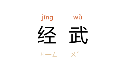 引《左传·宣公十二年》:「子姑整军而经武乎,犹有弱而昧者,何必楚?」三国魏·阮籍〈咏怀诗〉一三首之一:「才非允文,器非经武。」