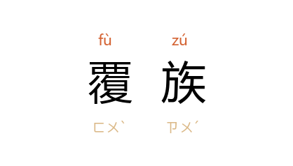 引《三国志·魏志·刘廙传》:“臣罪应倾宗,祸应覆族。”唐 皇甫枚 《三水小牍·温京兆》:“酷吏不知祸将覆族,死且将至,犹敢肆毒於人,罪在无赦!”宋 王谠 《唐语林·方正》:“一旦闻此覆族之言,实不敢承命!”