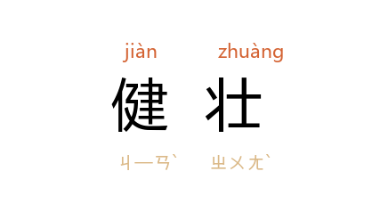 引唐 韩愈 《岳阳楼别窦司直》:“巍峨拔 嵩 华,腾踔较健壮。”明 吴承恩 《寿熙台潘公八袠障词》:“龙马精神,健壮有加於少日;凤皇仪采,辉光独瑞於今时。”李瑛 《戈壁日出·养鹿姑娘》诗:“看她养的鹿仔多健壮。”