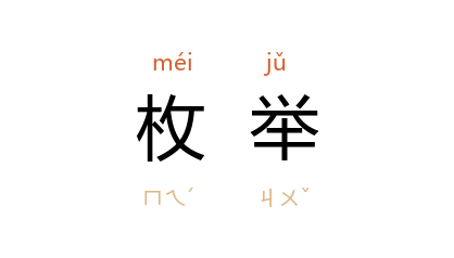 引《北史·恩幸传序》:“其间盗官卖爵,污辱宫闈者多矣,亦何可枚举哉。”《书·无逸》“其在 祖甲,不义惟王” 宋 蔡沉 集传:“下文 周公 言,自 殷 王 中宗 及 高宗 及 祖甲 及我 周文王。及云者,因其先后次第而枚举之辞也。”清 李渔 《闲情偶寄·词曲上·结构》:“此类繁多,不能枚举。”