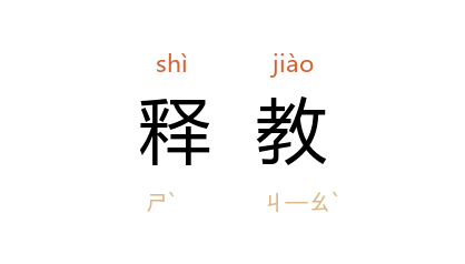 引《梁书·卷五一·处士传·庾诜传》:「晚年以后,尤遵释教,宅内立道场,环绕礼忏,六时不辍。」《西游记·第三八回》:「元帅,近闻你得了性命,皈依释教。」