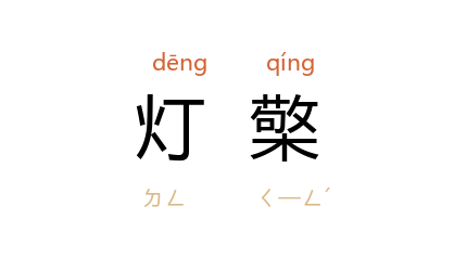 引北周·庾信〈对烛赋〉:「刺取灯花持炷烛,还却灯檠下烛盘。」唐·李商隐〈行至金中驿寄兴元渤海尚书〉诗:「六曲屏风江雨急,九枝灯檠夜珠圆。」