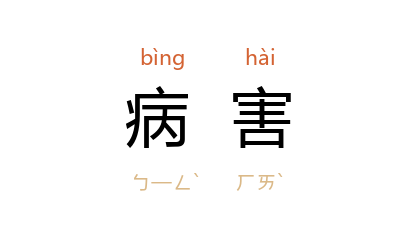⒈ 因气候环境、土壤不适宜,或细菌、病毒感染,导致植物的发育不良、枯萎或死亡,称为「病害」。