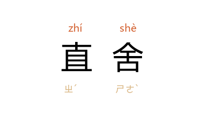 引唐 韩愈 《与华州李尚书书》:“独宿直舍,无可告语,展转歔欷,不能自禁。”宋 范仲淹 《依韵酬母湜推官》:“直舍有仙味,祕庭无俗声。”宋 何薳 《春渚纪闻·潘谷墨仙揣囊知墨》:“元祐 初,余为童子,侍先君居武学直舍中。”宋 洪迈 《夷坚乙志·钱瑞反魂》:“左右引入直舍,验视案牘,乃 浙 西提刑司公事也。”
