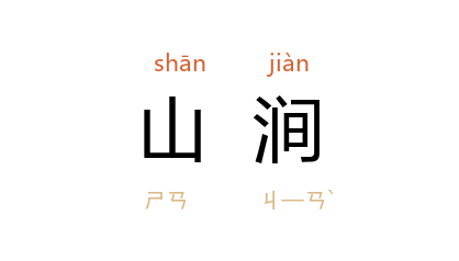 引唐 韦应物 《答僴奴重阳二甥》诗:“山涧依磽塉,竹树荫清源。”明 刘基 《题画梅》诗:“争似 罗浮 山磵底,一枝清冷月明中。”浩然 《艳阳天》第一一二章:“下边是个深不见底的山涧。”