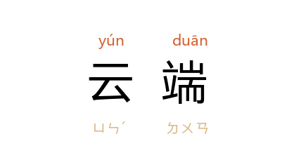 ⒈ 云中、云内、云际。。唐·李白〈长相思〉诗:「卷帷望月空长叹,美人如花隔云端。」。