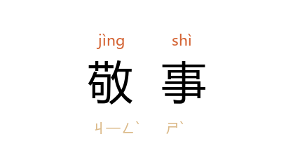 ⒉ 恭敬侍候。《书经·立政》:「敬事上帝,立民长伯。」