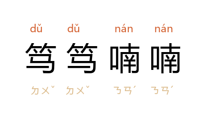 引元 高文秀 《黑旋风》第三折:“你看这呆廝,口里只管篤篤喃喃的説着许多説话,既然有饭,快拏将来餵他些罢。”