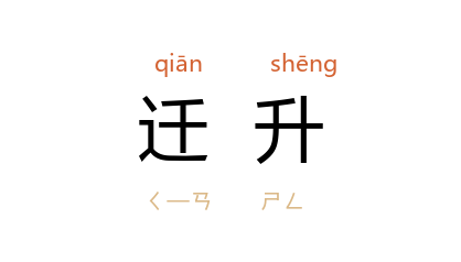 引唐 卢照邻 《益州至真观主黎君碑》:“武骑迁昇之路,冠盖云飞; 文翁 讲肄之堂,英灵雾集。”宋 秦观 《官制上》:“馆阁者,图书之府,长育英材之地也。从官於此乎次补,执政於此乎迁升。”明 陶宗仪 《辍耕录·箕仙有验》:“某欲乞 虞公 撰一保文,申达上帝,用求迁陞耳。”