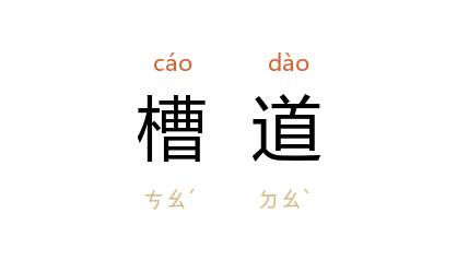 引《金瓶梅·第五〇回》:「月娘道:『你看是有个槽道的!这里人等著,就不进来了。』」
