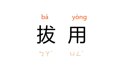 引《汉书·杜周传》:“朱博 果见拔用。”宋 叶适 《朝请大夫直龙图阁致仕沉公墓志铭》:“当是时,丞相患 淳熙 末知名士不採察而沉废於贱冗,数年间拔用几尽。”茅盾 《子夜》五:“刚才他很中意了 屠维岳,并且立即拔用,付以重任了。”