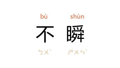 引飞卫 曰:‘尔先学不瞬,而后可言射矣。’”清 王韬 《淞隐漫录·莲贞仙子》:“丽娥 声尤清彻,脆堪裂帛,响遏行云,生尤为击赏,频回顾之,注目不瞬。”