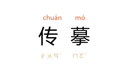 引宋 文有年 《题元子故宅》诗:“松煤狼籍楮山赭,空谷雷响工传摹。”明 胡应麟 《少室山房笔丛·经籍会通四》:“唐 宋 浮沉之业,遗裔之所世藏,往往钞録传摹,人所吝恡,间有刻本,率寡完篇。”
