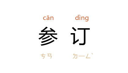 ⒈ 参照自己的意见并加以订正。也作「参定」。