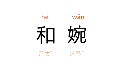 例如:「她个性和婉温柔,与同事相处融洽。」