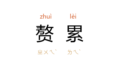 引《三侠五义》第二三回:“范生 送了 刘老者 回来,心中又是欢喜,又是感嘆;欢喜的是,事有凑巧;感嘆的是,自己艰难却又赘累朋友。”郭沫若 《一只手》三:“死了也可以免得我们的儿子多受些赘累啦。”姚雪垠 《长夜》四三:“票房因为走得慢,赘累大,看票的蹚将几乎死净,而票子也死去十之六七。”