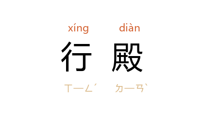 引唐 李昂 《戚夫人楚舞歌》:“风花菡萏落辕门,云雨徘徊入行殿。”元 冯子振 《鹦鹉曲·松林》:“山围行殿周遭住,万里客看牧羊父。”