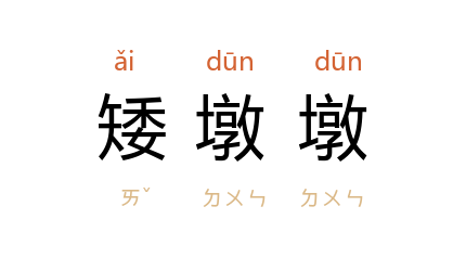 例如:「那位矮墩墩,头发苍白的老人,在街头卖艺维生已很久了。」
