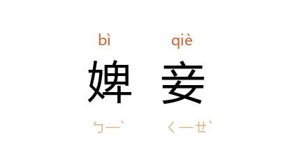 引《墨子·七患》:“马不食粟,婢妾不衣帛,此告不足之至也。”《韩非子·亡徵》:“后妻贱而婢妾贵,太子卑而庶子尊。”《史记·平原君虞卿列传》:“而君之后宫以百数,婢妾被綺縠,餘粱肉,而民褐衣不完,糟穅不厌。”《三国志·魏志·东海定王霖传》:“而 霖 性麤暴,闺门之内,婢妾之间,多所残害。”