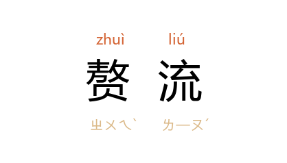 引《易纬是类谋》:“陪孽领威,君若赘流。”郑玄 注:“陪臣孽庶子,威气内心赘如流,皆不得於事,赘流或为日间小治也矣。”清 段玉裁 《明史十二论·三大案论》:“盖 世宗 之视 孝宗、武宗,犹 永乐 之视 建文帝,英宗 之视 景泰帝,如赘流然,仅未敢废之而已。”