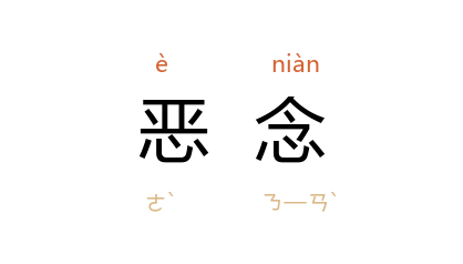 引《菩提心论》:“宿殃未殄,恶念旋起。”清 梁章鉅 《退庵随笔·躬行》:“才一善念动,则取白豆投其中,恶念动,则取黑豆投其中。”鲁迅 《朝花夕拾·<狗·猫·鼠>》:“当我失掉了所爱的,心中有着空虚时,我要充填以报仇的恶念!”