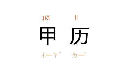 引唐 陆贽 《贞元改元大赦制》:“凡为择人,其在精覈……所司依资叙注拟,便於甲历之内,具标举主名衔,仍牒报御史臺。”宋 王应麟 《玉海·历法》:“外纪 伏羲 纪阳气之初为律法,建五气,立五常,定五行有甲历五运。 《古三坟》:伏羲氏 木王月命臣 龙潜氏 作甲历。”