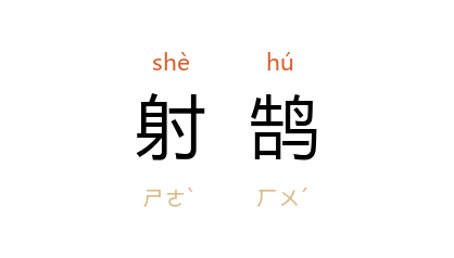 引沉鍊 教把稻草扎成三个偶人,用布包裹,一写‘ 唐 奸相 李林甫 ’;一写‘ 宋 奸相 秦檜 ’;一写‘ 明 奸相 严嵩 ’。把那三个偶人做个射鵠。”《东周列国志》第五八回:“潘党 教他那七层坚甲,綳於射鵠之上。”