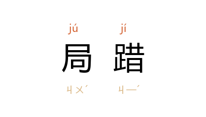 ⒊ 惶恐。 明 刘元卿 《贤奕编·家闲》:“自 文惠公 既登将相,两兄弟亦为大官,而其父 秦公 是时尚无恙,每 秦公 与客坐,则 文惠公 兄弟左右侍立,坐客跼踖不安求去。