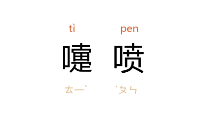 ⒈ 鼻子黏膜因受寒气或异物的刺激,而产生向外喷气的动作。也作「喷嚏」。