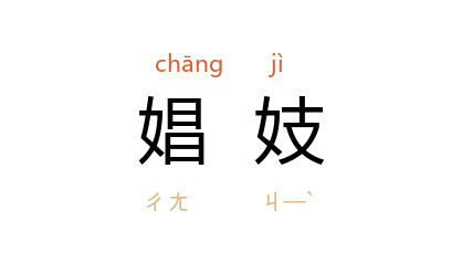 ⒈ 原指从事歌舞的女艺人,后称卖淫的女子。