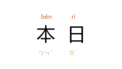 引明 张居正 《拟日讲仪注疏》:“本日若遇风雨,传旨暂免。”清 黄六鸿 《福惠全书·教养·讲学》:“本日早间,司会者将报名册上。”