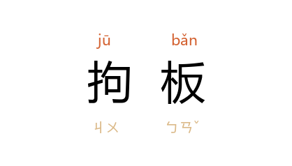⒈ 拘泥呆板。
