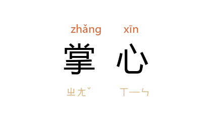 ⒈ 手心。 北齐 颜之推 《颜氏家训·勉学》:“齐孝昭帝 侍 娄太后 疾,容色顦悴,服膳减损。