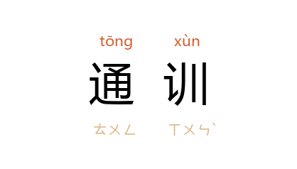 ⒉ 训诂学名词。在字书或古书的注释中对多义字根据通常使用的意义所加的解释。如“庸”字训“用”,训“常”,训“众”;其中在古书中训“用”者为常见的训释,“用”就是通训。