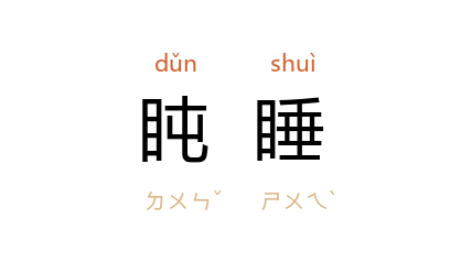 引元·刘唐卿《降桑椹·第二折》:「这一会儿,觉有些昏沉,我搭伏著这香案,暂且盹睡著。」