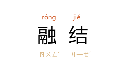引语出 晋 孙绰 《游天台山赋》:“融而为川瀆,结而为山阜。”唐 权德舆 《彭城郡王刘公墓志铭》:“析木之下,幽陵碣石,融结絪緼,诞灵熊浑,乃生元臣,以翼大君。”金 元好问 《游黄华山》诗:“轻明圆转不相碍,变见融结谁为雄。”贾芝 《颂歌·马头琴手的歌》:“把世界照亮了的是太阳;把亿万人的心融结在一起的是 毛主席 !”
