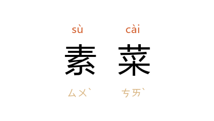 引《儒林外史·第二二回》:「这里有个大观楼,素菜甚好,我和你去吃素饭罢。」