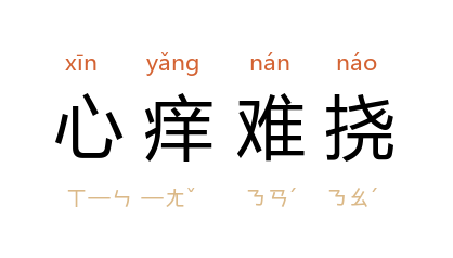 ⒈ 形容心中情绪波动不定,无法克制。元·王实甫也作「心痒难挝」、「心痒难揉」、「心痒难搔」。