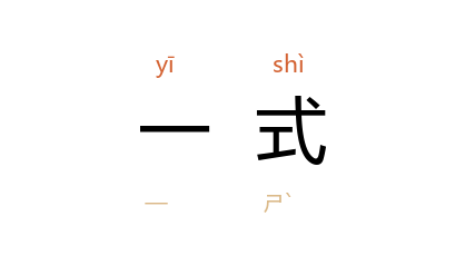 引鲁迅 《野草·这样的战士》:“他走进无物之阵,所遇见的都对他一式点头。”洛丁 等《粮食》:“‘警备队’那些个吃货,听了风还不把头子攒到裤里才怪哩,上一次八路打东舍,就叫三个老八,把他们十八个一式搔了个草鸡。”