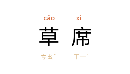引唐 欧阳詹 《永安寺照上人房》诗:“草席蒲团不扫尘,松闲石上似无人。”鲁迅 《朝花夕拾·<狗·猫·鼠>》:“夜色更加黯然;桂叶瑟瑟地作响,微风也吹动了,想来草席定已微凉,躺着也不至于烦得翻来覆去了。”