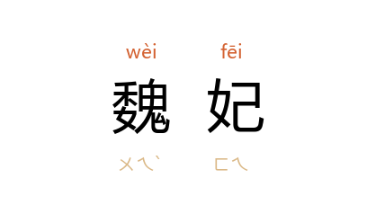 引即魏紫。语本 宋 丘璿 《牡丹荣辱志》:“魏红为妃。”宋 黄裳 《宴琼林·牡丹》词:“已览徧韶容,最后有花王,芳信来报。魏妃天与色,拥姚黄、去赏十洲仙岛。”