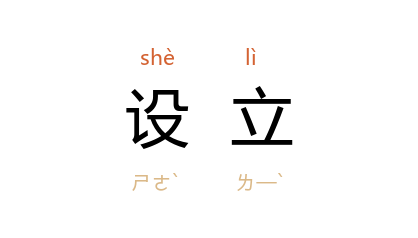 引《水浒传》第二回:“史进 修整门户墙垣,安排庄院,设立几处梆子,拴束衣甲,整顿刀马,提防贼寇,不在话下。”清 孔尚任 《桃花扇·设朝》:“至于设立将相,寡人已有成议。”孙犁 《澹定集·乡里旧闻三》:“不久在 义里村 就设立了一座粥厂。”