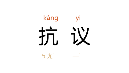 ⒉ 今用以指对他方的言论或行动提出强烈的反对意见。